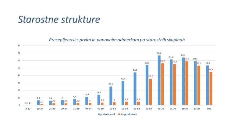 Pri osebah starejših od 65 let je v Sloveniji vse manj prisotne okužbe s covid-19. Največ okuženih je v delovni oziroma aktivni populaciji. »Računamo, da se bo trend zmanjševal še naprej,« je povedal Krek.