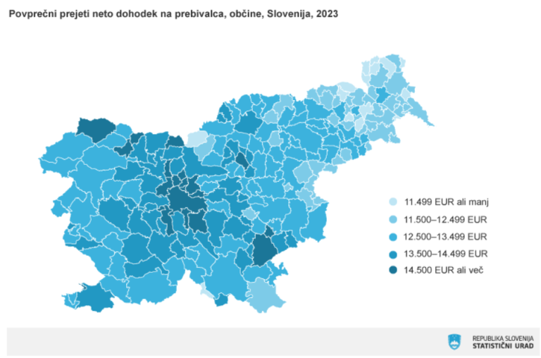 Povprečni neto dohodek na prebivalca v slovenskih občinah razkriva velike razlike. Šenčur je lani prehitel celo prestolnico, medtem ko Kuzma ostaja najrevnejša občina v državi.