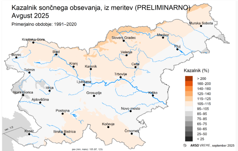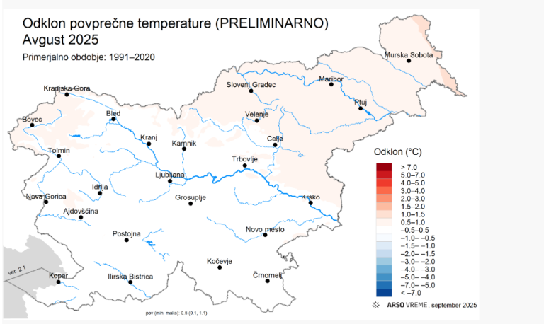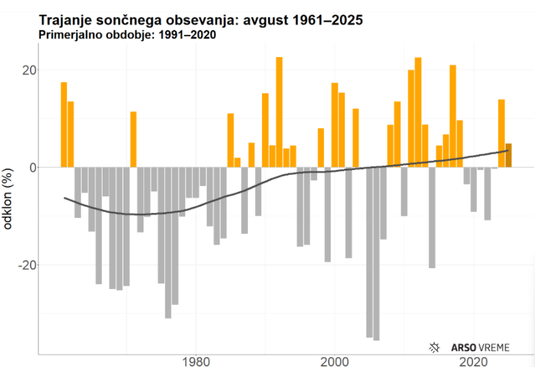 Avgust 2025: nadpovprečno topel, nekoliko suh in nadpovprečno sončen