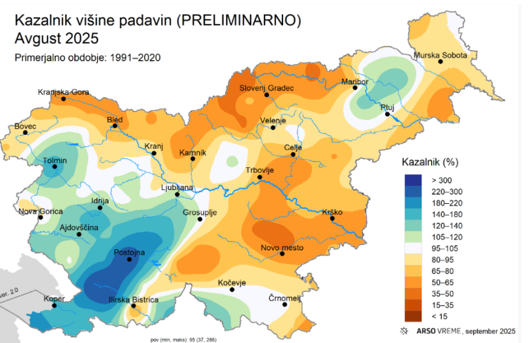 Padavin je bilo nekoliko manj od povprečja – kazalnik je znašal 95 odstotkov.