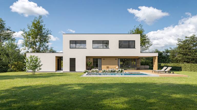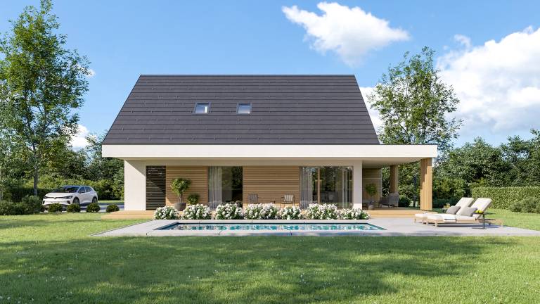 Arhitektura linije Komfort izhaja iz enostavne zasnove tradicionalnih hiš s strmim naklonom strehe. Podaljšani napušči notranjost hiše povežejo z okolico hiše in prijetno pokrito teraso.