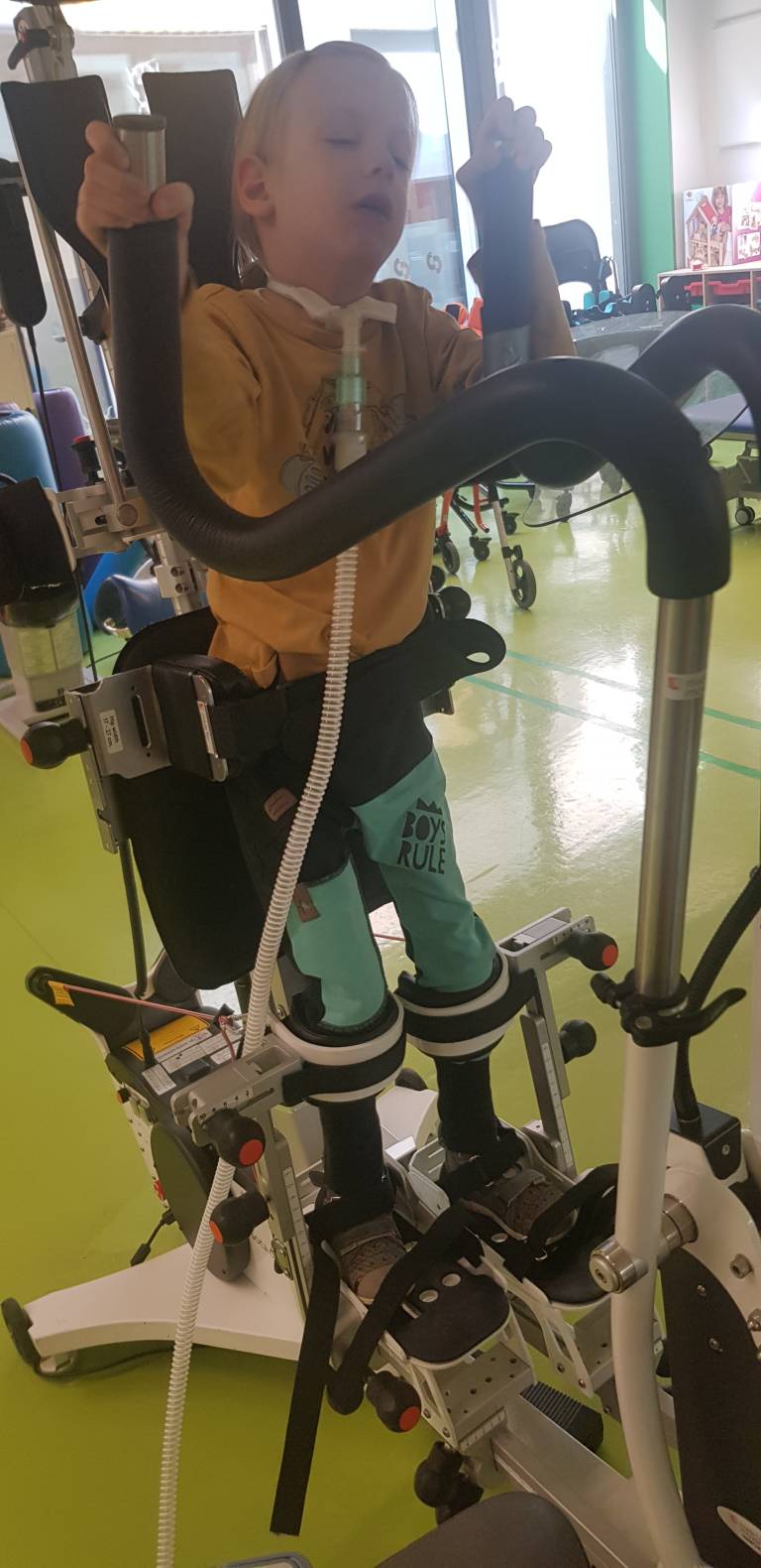 Pri sedmih letih Matjaž zato še vedno ne hodi samostojno, diha ob pomoči respiratorja ter se hrani preko cevke, vstavljene v njegov želodec. Potrebuje 24-urno oskrbo in nego, kar je za starše zelo zahtevno.