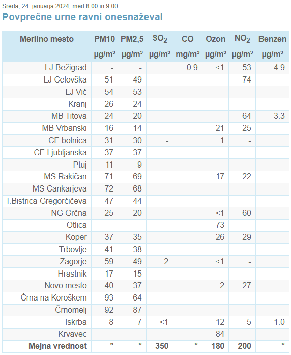 Mejna vrednost delcev PM10 je 50 mikrogramov na kubični meter.