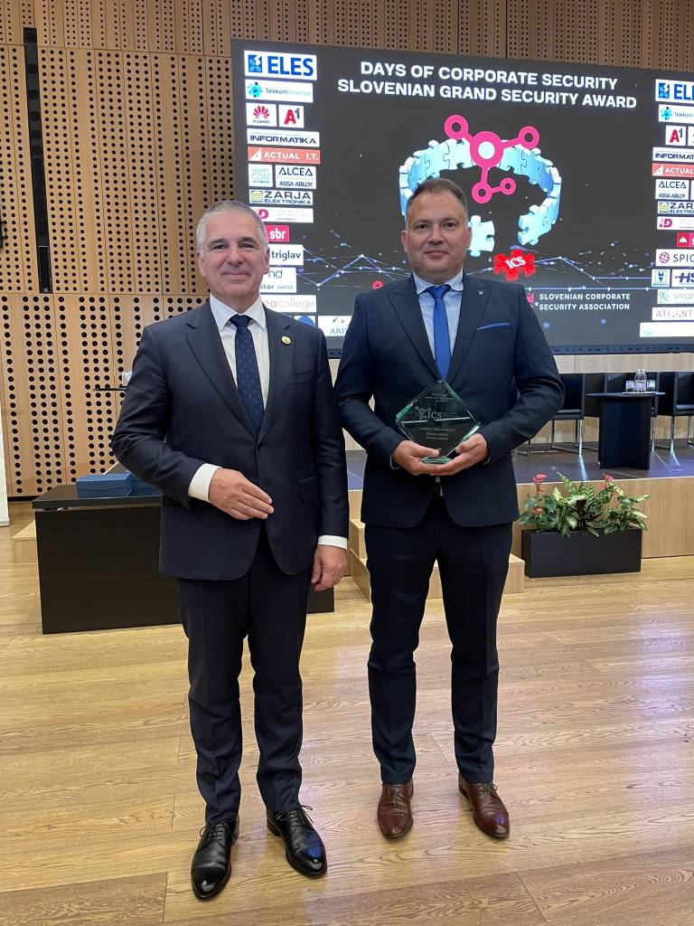 Danes so bile v okviru 15. mednarodne konference »Dnevi korporativne varnosti 2024«, ki ga je organiziral Institut za korporativne varnostne študije v sodelovanju s Slovenskim združenjem korporativne varnosti, v Brdu pri Kranju, podeljene nagrade za dosežke s področja korporativne varnosti.