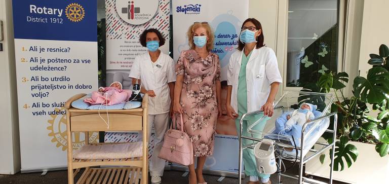 Člani društva Slojenčki in člani Zveze Rotary klubov Distrikta 1912, ki zajema člane Rotary klubov Slovenije in Severne Makedonije, so se odzvali klicu na pomoč. Zbrali so sredstva za nakup grelnih gnezdec in oksimetrov za novorojenčke.