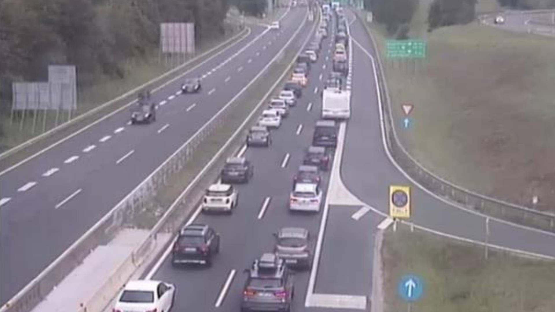 Na gorenjski avtocesti in ljubljanski zahodni obvoznici od Broda proti Primorski občasno zapirajo predor Šentvid. Na južni ljubljanski obvoznici skoraj tri kilometre dolg zastoj sega od Viča do razcepa Kozarje, promet je nato močno zgoščen tudi naprej po primorski avtocesti proti Vrhniki, pa tudi pred mednarodnim mejim prehodom Fernetiči v smeri proti Italiji.