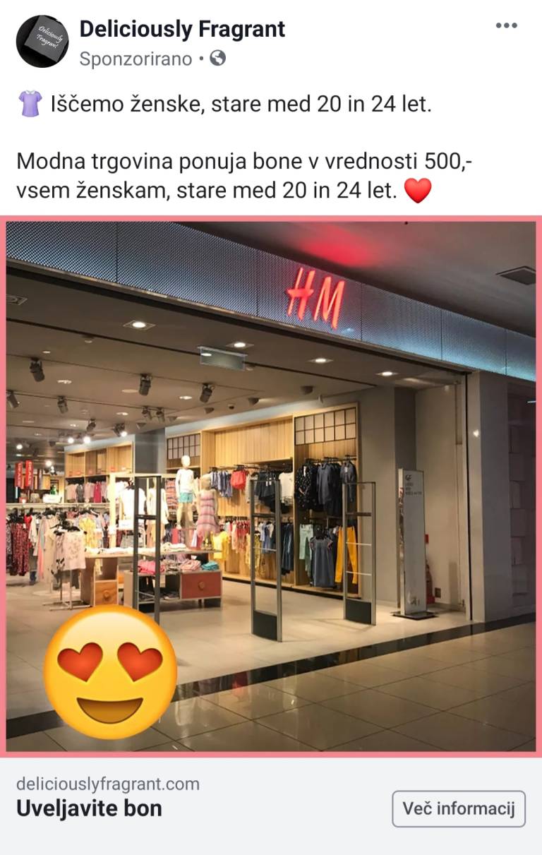 Na uredništvo Sobotainfo se je obrnila bralka in opozorila, da na družbenem omrežju Facebook poteka lažna nagradna igra. Goljufi k sodelovanju vabijo vse ženske stare med 20 in 24 let in obljubljajo bone v vrednosti 500 evrov v trgovinah H&M.