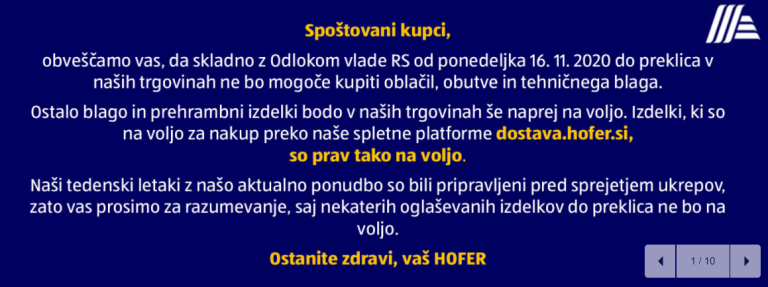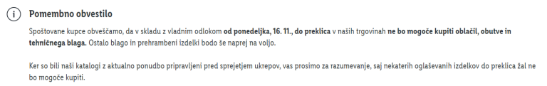 Vlada je namreč v odlok zapisala, da se pri trgovinah, ki so lahko odprte, "kot izjema ne šteje prodaja oblačil, obutve in tehničnega blaga v teh prodajalnah". V prejšnjih odlokih, ko je vlada odrejala zapiranje trgovin, takšne dikcije ni bilo.
