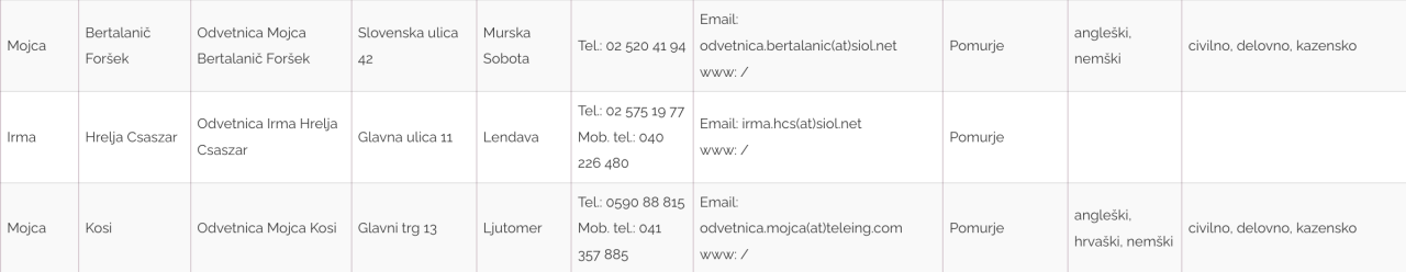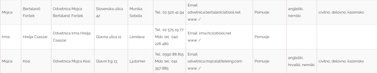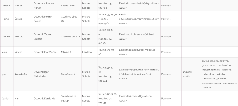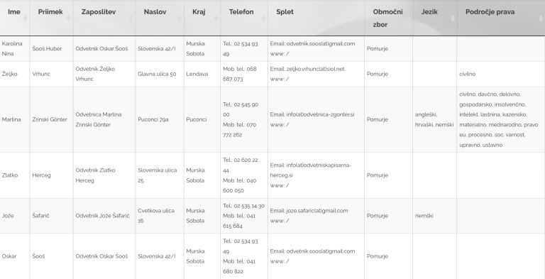 Seznam odvetnikov iz Pomurja, ki bodo na ta dan nudili brezplačne storitve: