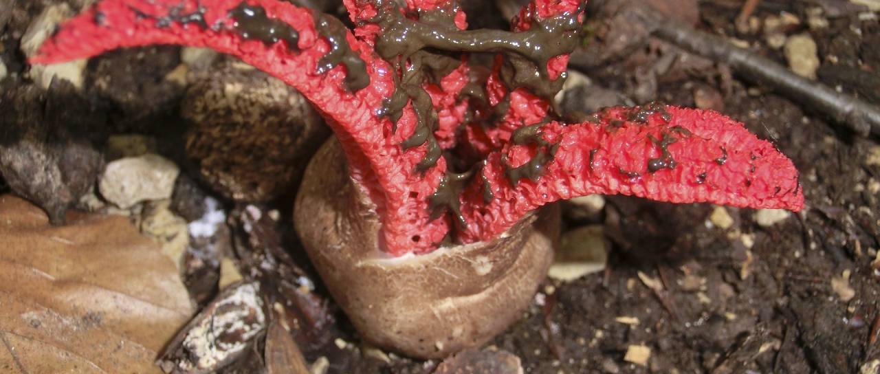 Tudi v našem delu Slovenije je tako mogoče ponekod naleteti na zanimivo in precej vpadljivo glivo, imenovano lovkasta mrežnica ali veliki lovkar (Clathrus archeri).