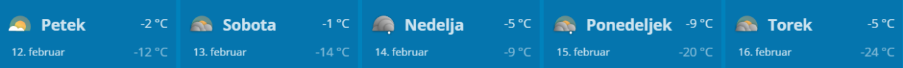 Tudi slikovne napovedi Agencije RS za okolje napovedujejo zelo nizke temperature za Mursko Soboto od četrtka, 11. februarja naprej.