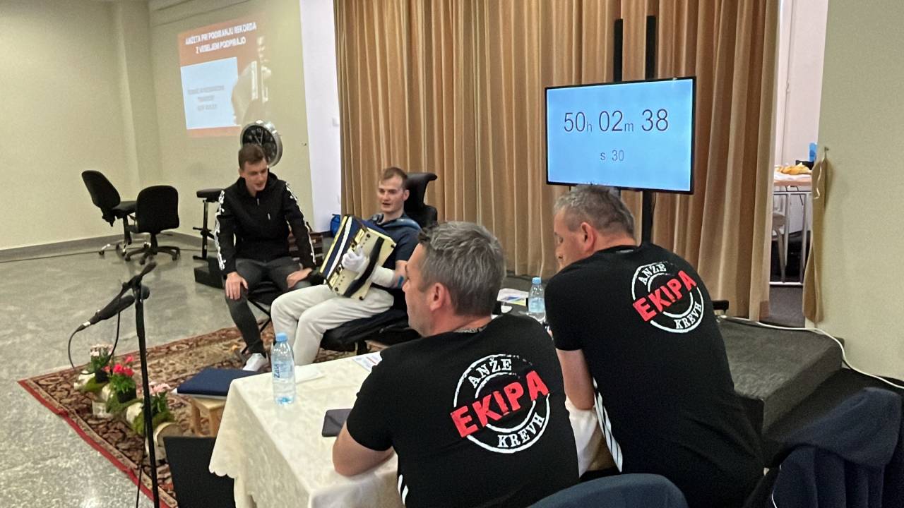 Anže Krevh je postavil nov Guinnessov rekord v neprekinjenem igranju harmonike.