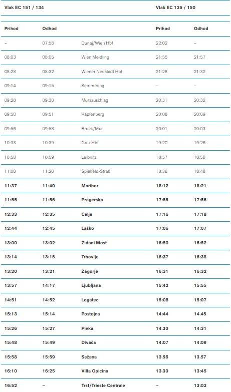 Vozni red nove povezave Dunaj–Ljubljana–Trst