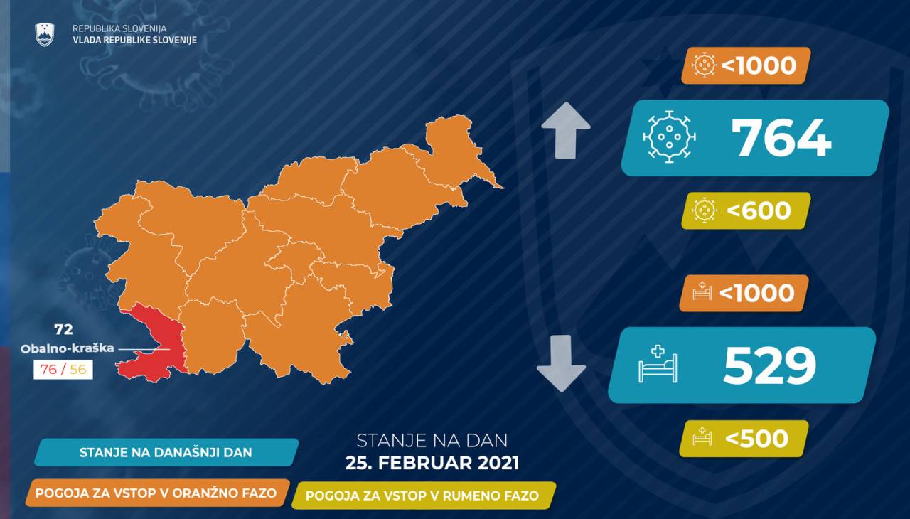 NOVI PODATKI: Eden od pogojev za rumeno fazo blizu izpolnitve, kako je z okužbami?