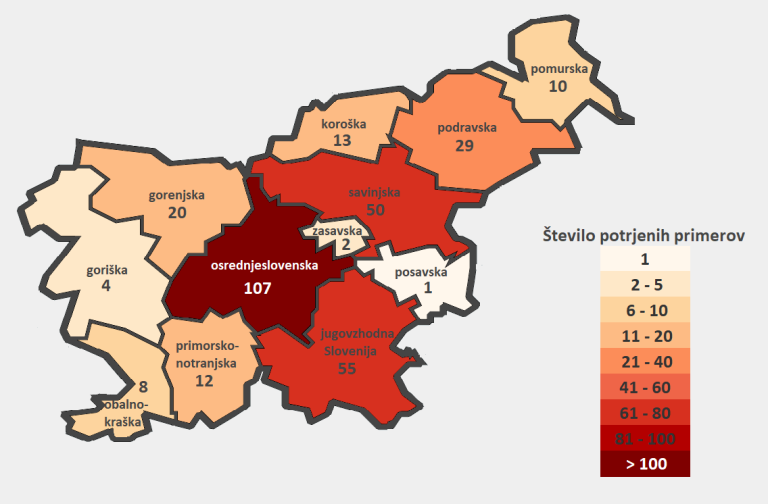 V primerjavi z včeraj se je število zvišalo za 33 primerov. Skupno je bilo opravljenih 9860 testiranj. V Pomurju so zabeležili 10 primerov okužb.