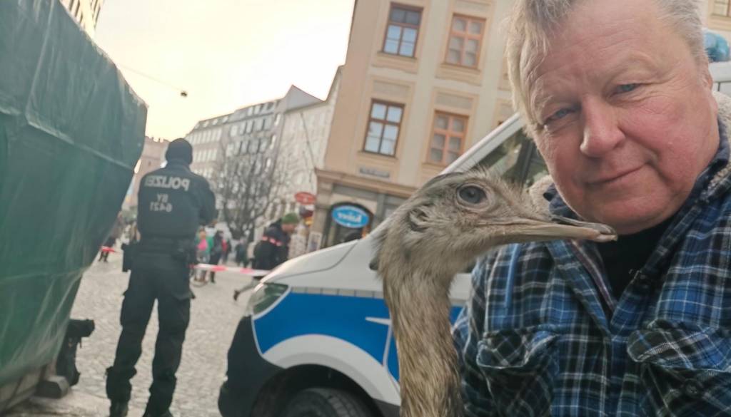 Vsi tisti, ki ste se že kdaj sprehajali po prestolnici, predvsem na sobotno jutro, ste že sigurno opazili velikega neletečega ptiča nanduja, ki se po ljubljanskih ulicah mirno sprehaja ob svojem skrbniku Janezu Cetinu.