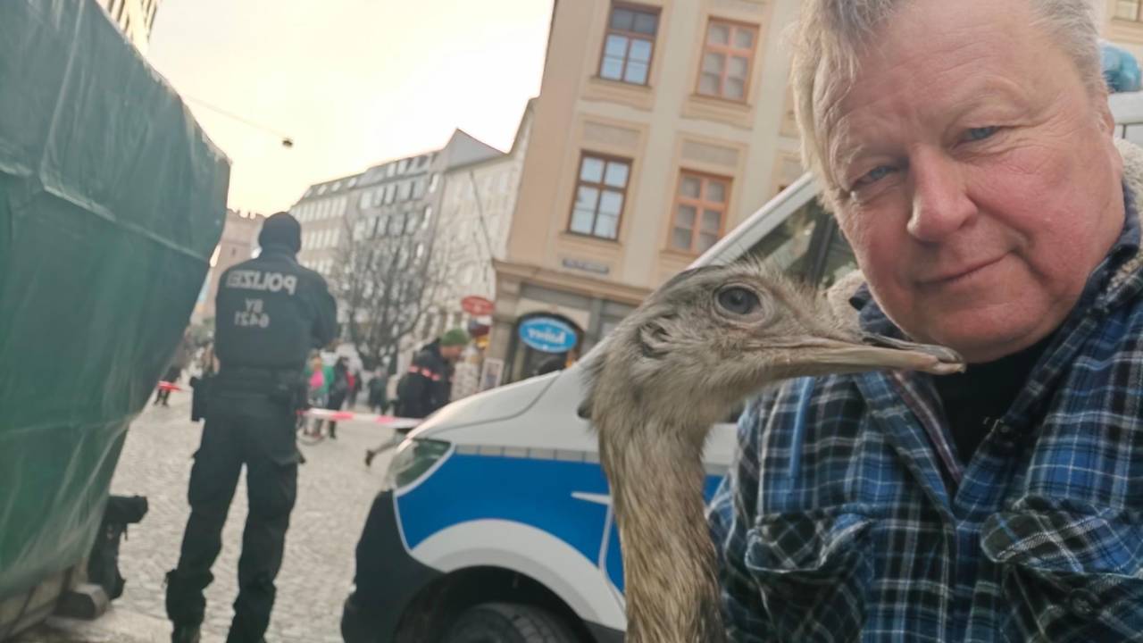 A potovanje, ki bi moralo biti polno novih pustolovščin za ptiča z dolgim vratom, v sklopu katerih bi obiskoval restavracije in znane bavarske kraje, se je kmalu sprevrglo v pravo nočno moro, tako za lastnika kot njegovega »hišnega ljubljenčka«.
