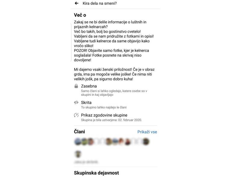 Uporabnike družbenega omrežja Facebook razburja neokusno popredmetenje žensk v zasebni skupini, znotraj katere so člani delili fotografije natakaric v slovenskih lokalih in jih nato ocenjevali na osnovi videza.