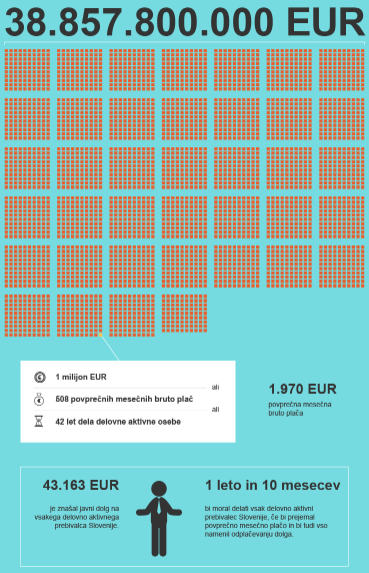 Bruto dolg sektorja država je konec leta 2021 znašal 38,9 milijard evrov ali 74,7 odstotka BDP-ja. V primerjavi s koncem leta 2020 se je nominalno zvišal za dobro milijardo evrov, relativno pa se je znižal za dobrih pet odstotkov BDP-ja.