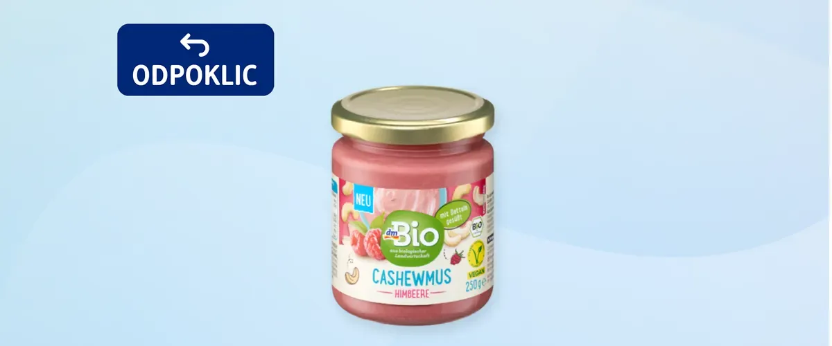 Podjetje dm Slovenija obvešča, da odpoklicuje vse izdelke dmBio namaza iz indijskih oreščkov z liofiliziranimi malinami (250 g) z datumom uporabe do vključno 28. 4. 2026.