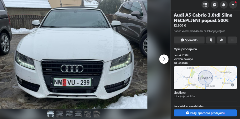 Na Facebooku se prodaja Audi A5 Cabrio za 12.500 evrov, ob tem pa prodajalec ponuja popust necepljenim.