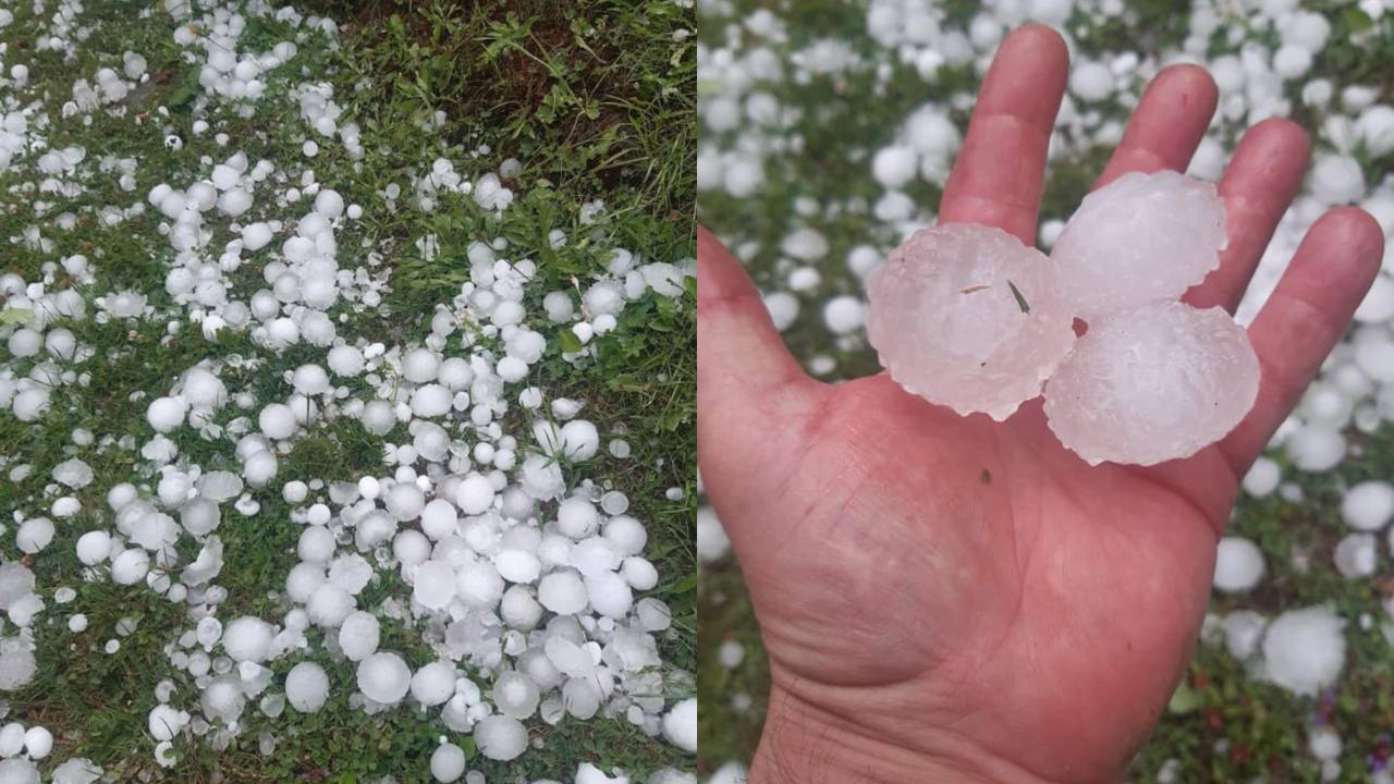 Kot jajce debela toča je že padala na območju Lovrenca na Pohorju. O toči prav tako poročajo z območja Ruš.