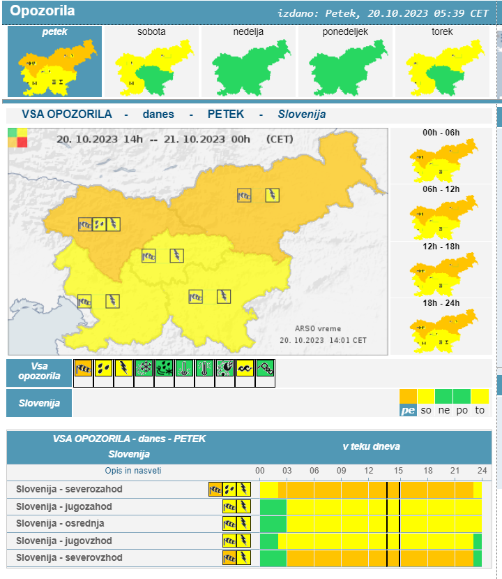 Topel, a vetroven petek. Agencija Republike Slovenije za okolje je zaradi močnih sunkov vetra izdala oranžno opozorilo.