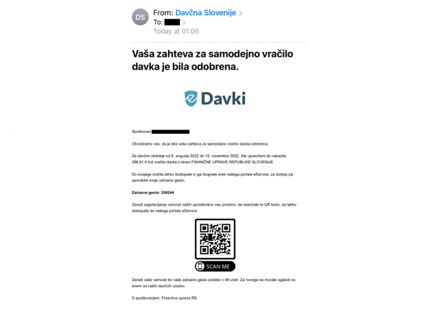 Že v mesecu novembru smo poročali, da se je na Finančno upravo Republike Slovenije obrnilo več zavezancev, ki so preko SMS sporočila ali elektronske pošte prejeli obvestilo, ki naj bi ga poslala finančna uprava.