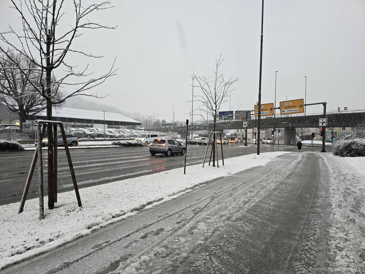 Promet je zaradi vremenskih razmer upočasnjen in povečan na cestah proti večjim mestom, pri čemer prihaja do zastojev, med drugim na štajerski avtocesti med Lukovico in Ljubljano. Na cesti čez prelaz Vršič so obvezne snežne verige.