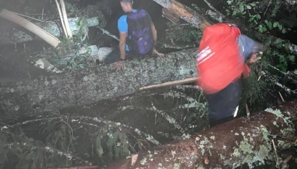 Gorski reševalci Gorske reševalne službe Mojstrana so pozno zvečer na pomoč priskočili planincem, ki so zaradi neprevozne ceste iz Krme ostali ujeti v koči.