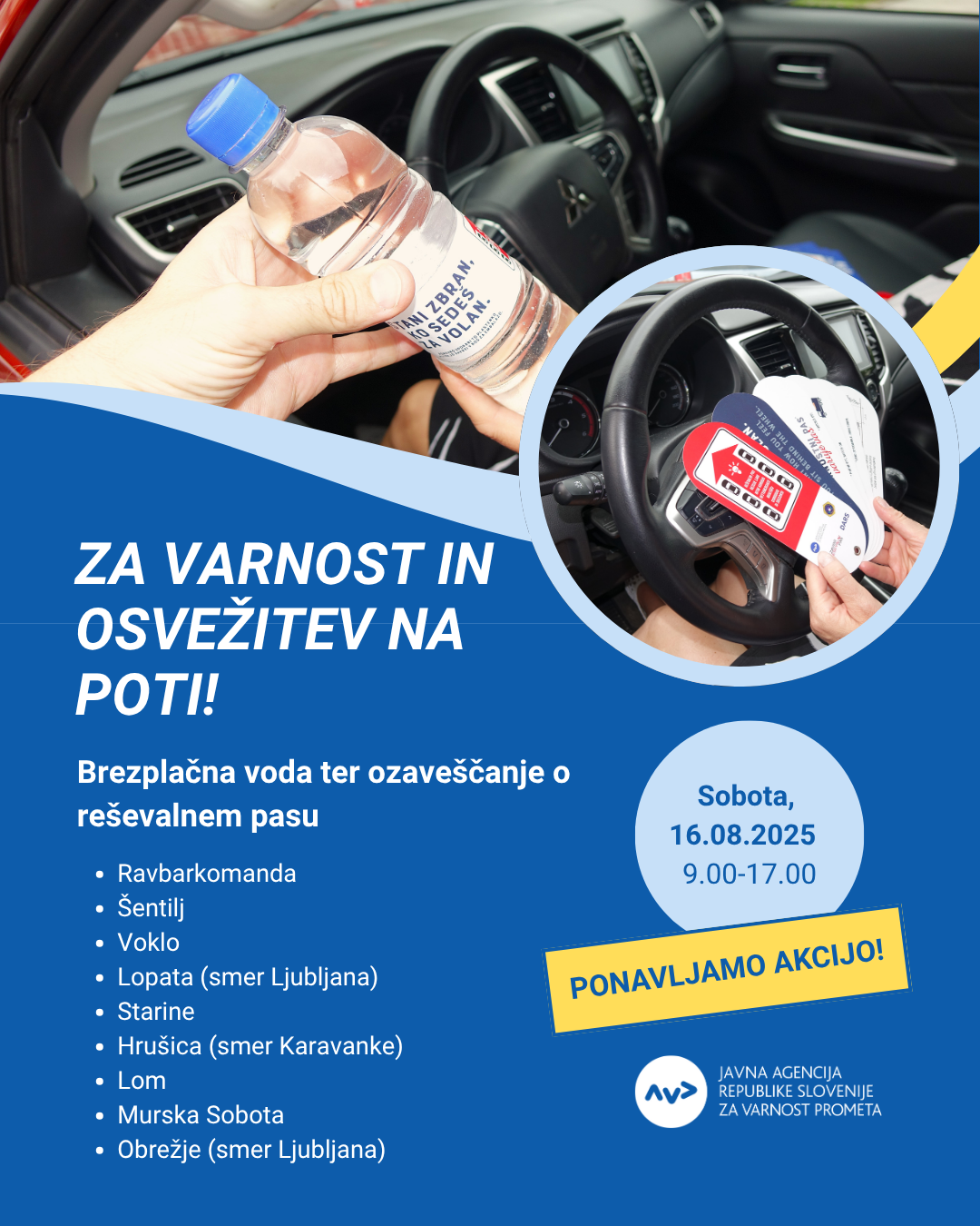 Letos je na slovenskih cestah umrlo že 63 ljudi, od tega kar 25 zaradi neprilagojene hitrosti. Agencija za varnost prometa opozarja na pomen psihofizične pripravljenosti, defenzivne vožnje ter doslednega spoštovanja prometnih pravil. V zadnji podobni akciji, 12. julija, so razdelili skoraj 4000 plastenk vode, odziv voznikov pa je bil izjemno pozitiven.