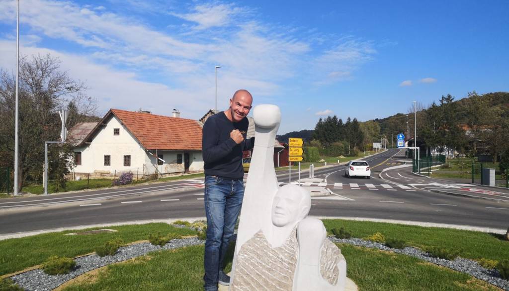 Poklon, ki si ga boksarski šampion s posebnim ponosom pogleda od bližje. Nista si podobna, a to tudi ni namen. Skulptura ne posnema potez boksarskega šampiona, ampak mu je posvečena. Kot pravi, je počaščen.