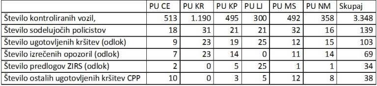 Na območju Policijske uprave Murska Sobota je minuli vikend v poostrenem nadzoru sodelovalo 32 policistov, ki so pri tem opravili kontrolo pri 492 voznikih. Ugotovili so 12 kršitev odloka glede gibanja izven občin, izrekli 11 opozoril in za en primer podali predlog inšpektoratu. Ob tem so zaznali tudi 12 kršitev cestnoprometnih predpisov. Statistično to pomeni, da je bilo kršitev odloka le v 2,4 odstotkih.