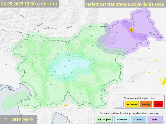 Agencija Republike Slovenije za okolje svari pred veliko verjetnostjo pojavljanja toče, najbolj sta ogrožena Podravje in Savinjska dolina.