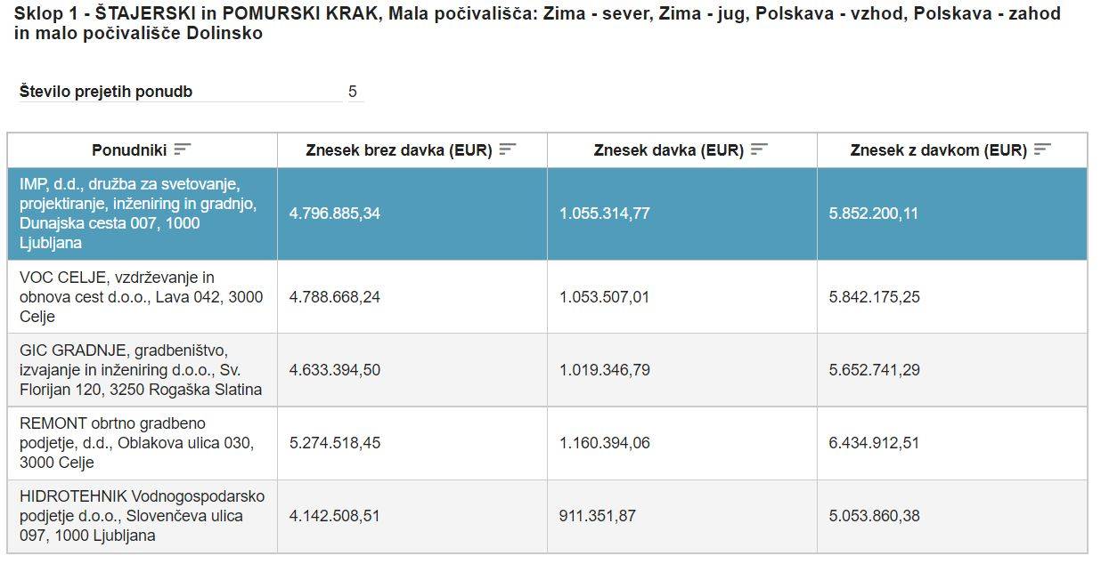 Rok za oddajo ponudb v postopku javnega naročila »Rekonstrukcija malih počivališč na omrežju avtocest v upravljanju DARS: Sklop 1: ŠTAJERSKI in POMURSKI KRAK; Sklop 2: GORENJSKI KRAK; Sklop 3: PRIMORSKI KRAK«, je potekel 3. novembra.