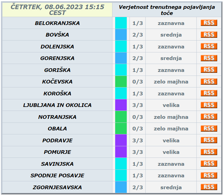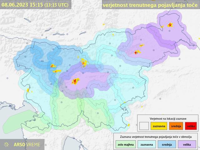 Agencija Republike Slovenije za okolje je za Podravje, Pomurje in Ljubljano z okolico izdala vijoličasto opozorilo za verjetnost trenutnega pojavljanja toče.