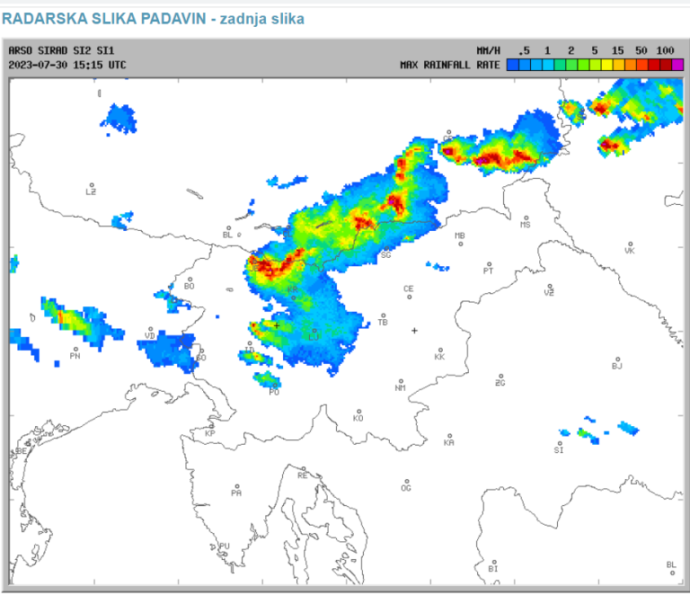 V popoldanskih urah lahko zopet pričakujemo nov razvoj nevihtnih celic nad Avstrijo, ki bodo potovale v smeri jugovzhoda.