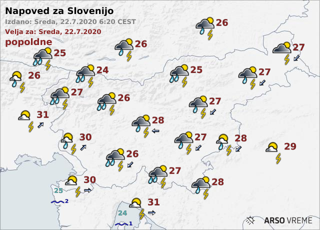 Zapihal bo veter vzhodnih smeri. Najvišje dnevne temperature bodo od 23 do 28, na Primorskem okoli 30 stopinj Celzija.