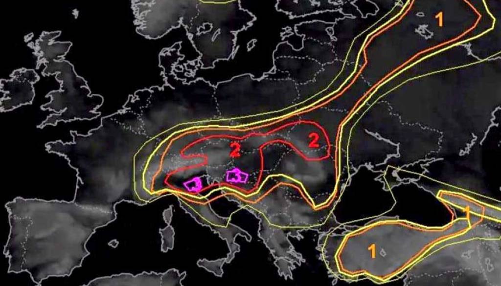 Predvsem na skrajnem vzhodu Slovenije so danes izpolnjeni vsi pogoji za nastanek izjemno močnih neviht. Za obmejno območje izdano redko opozorilo najvišje stopnje.