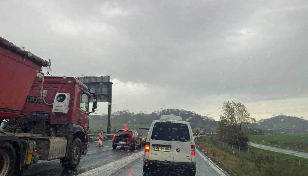 Kot še sporočajo na prometnno informacijskem portali, se na omenjenem mestu zaradi del na cesti čaka približno deset minut.