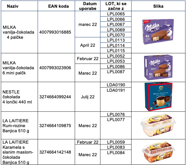 Zveza Potrošnikov Slovenije obvešča o odpoklicu več sladoledov. V primeru, da imate ta izdelek doma, ga ne uporabljajte. Če ga boste vrnili v trgovino, kjer ste ga kupili, vam je trgovec dolžan vrniti kupnino.
