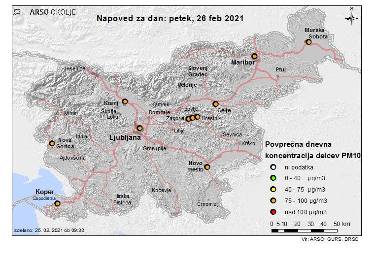 Danes in jutri je v večini Slovenije pričakovana visoka onesnaženost zraka z delci PM10.