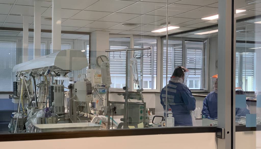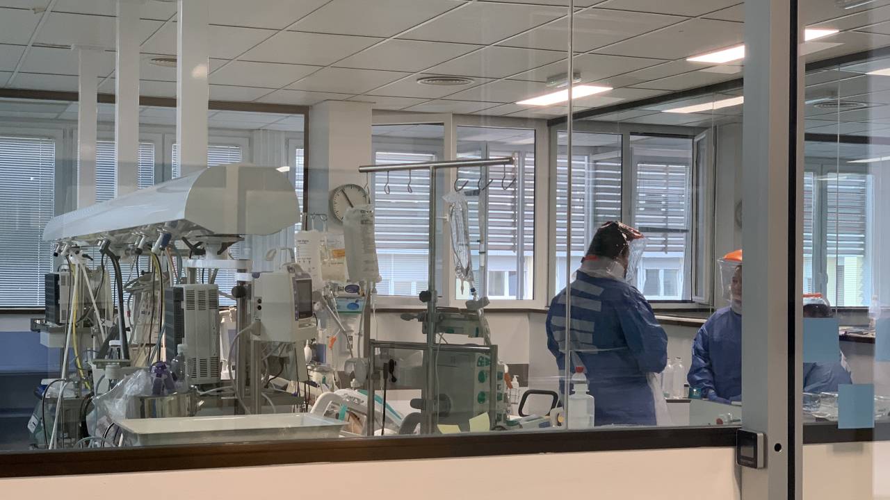 Hugon Možina, vodja internistične prve pomoči na Univerzitetnem kliničnem centru Ljubljana, je povedal, »da je trenutno v Univerzitetnem kliničnem centru Ljubljana hospitaliziranih kar 327 bolnikov s covidom-19, kar 56 od teh jih je na intenzivni negi, 49 bolnikov je intubiranih oziroma na mehaničnem predihavanju.«