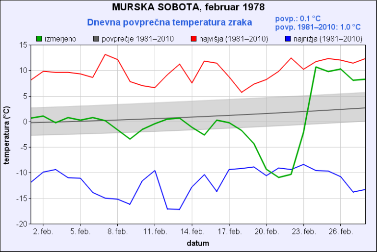 Zadnja dekada februarja 1978 je bila na severovzhodu temperaturno razburkana; v dveh dneh se je rekordno ogrelo, za okoli 20 stopinj Celzija. 21. februarja zjutraj je bilo v Murski Soboti -23,6 °C, le pet dni kasneje so popoldne izmerili +17,2 °C.