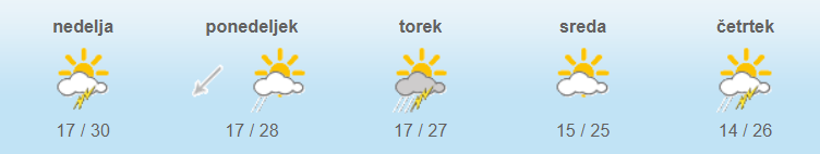 V torek bo sprva sončno, sredi dneva in popoldne pa spremenljivo do pretežno oblačno s plohami in nevihtami, ki se bodo nadaljevale v noč na sredo.