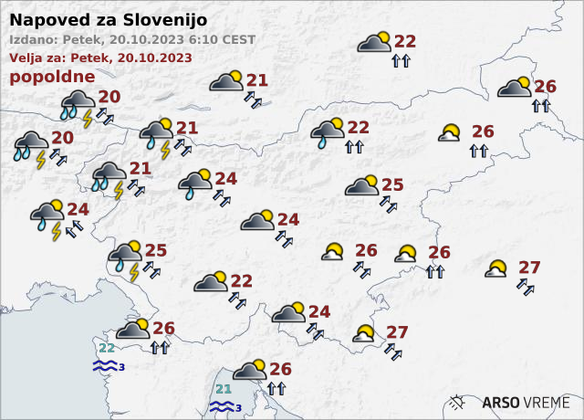 Agencija za okolje je za petek, 20. oktober, za severni del Slovenije izdala oranžno, za preostali del države pa rumeno vremensko opozorilo.