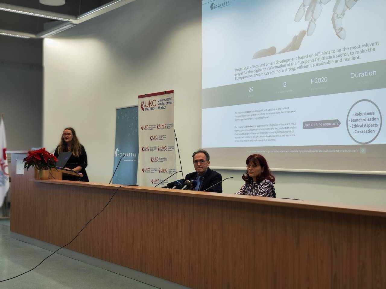 »Vrniti čas bolniku, to je namen tega robota, skratka opravljati tista dela, ki so ponavljajoča se, monotona, dolgočasna, preprosta in jih robot lahko prevzame,« doda Vojko Flis, v. d. generalnega direktorja Univerzitetnega kliničnega centra Maribor in vodja projekta HosmartAI za Univerzitetni klinični center Maribor.