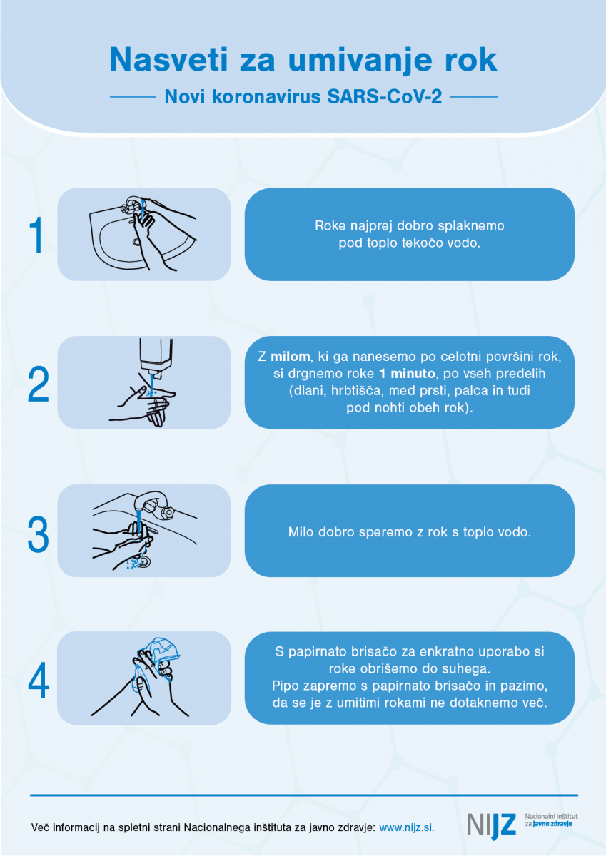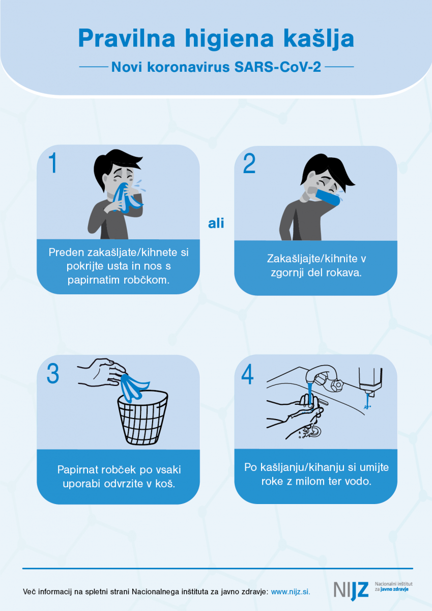 Pri preprečevanju okužbe z virusom SARS-CoV-2 je tako kot pri drugih nalezljivih bolezni, ki povzročajo okužbe dihal, priporočljivo upoštevati vsakodnevne preventivne ukrepe. Kateri so ti ukrepi, pojasnjujejo na Nacionalnem inštitutu za javno zdravje.