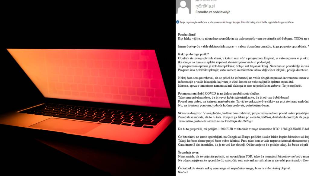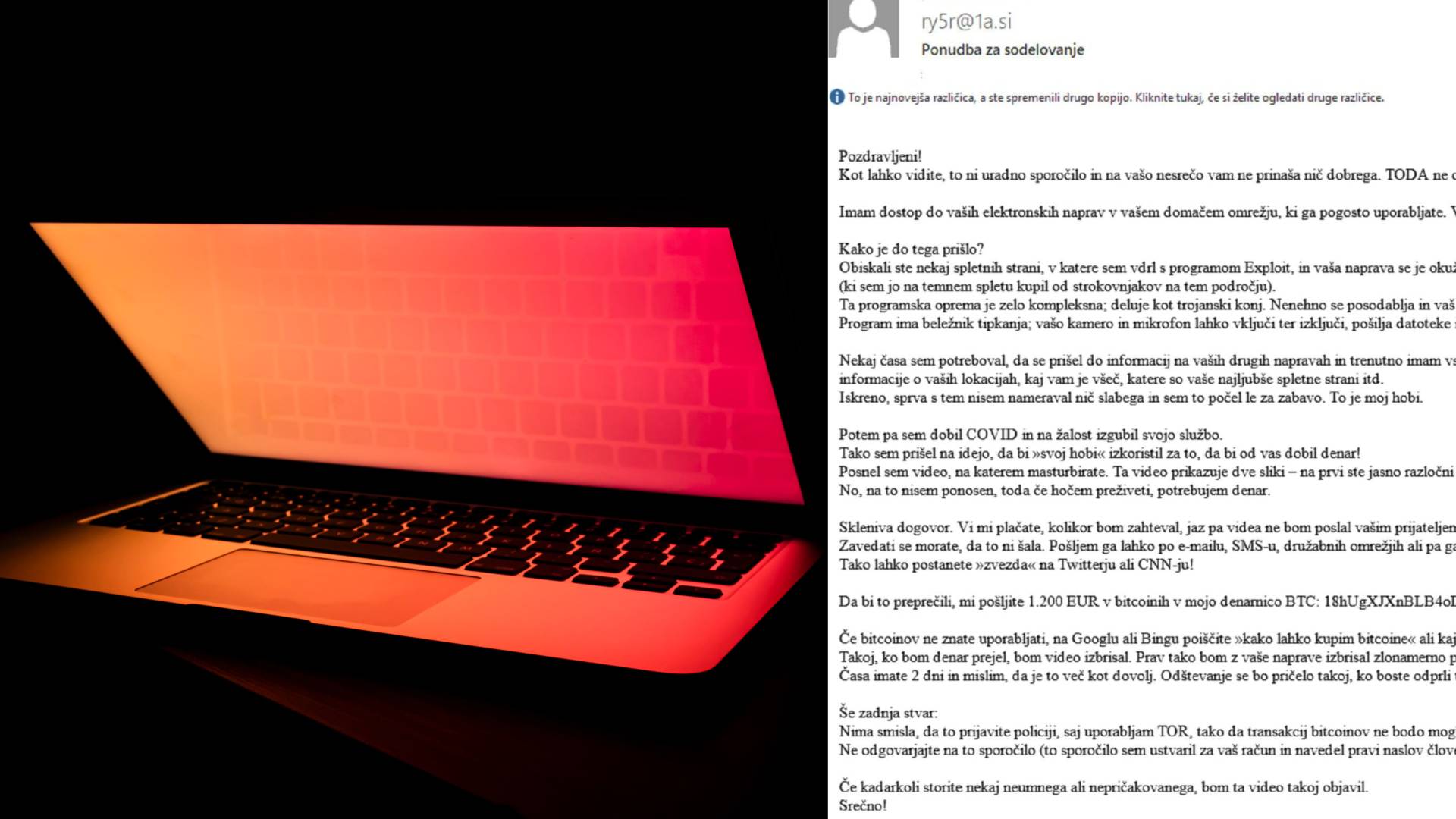 Ste prejeli sporočilo, v katerem vas neznanec izsiljuje z intimnimi posnetki, ki jih bo objavil na spletu, če mu ne nakažete 1.200 evrov?