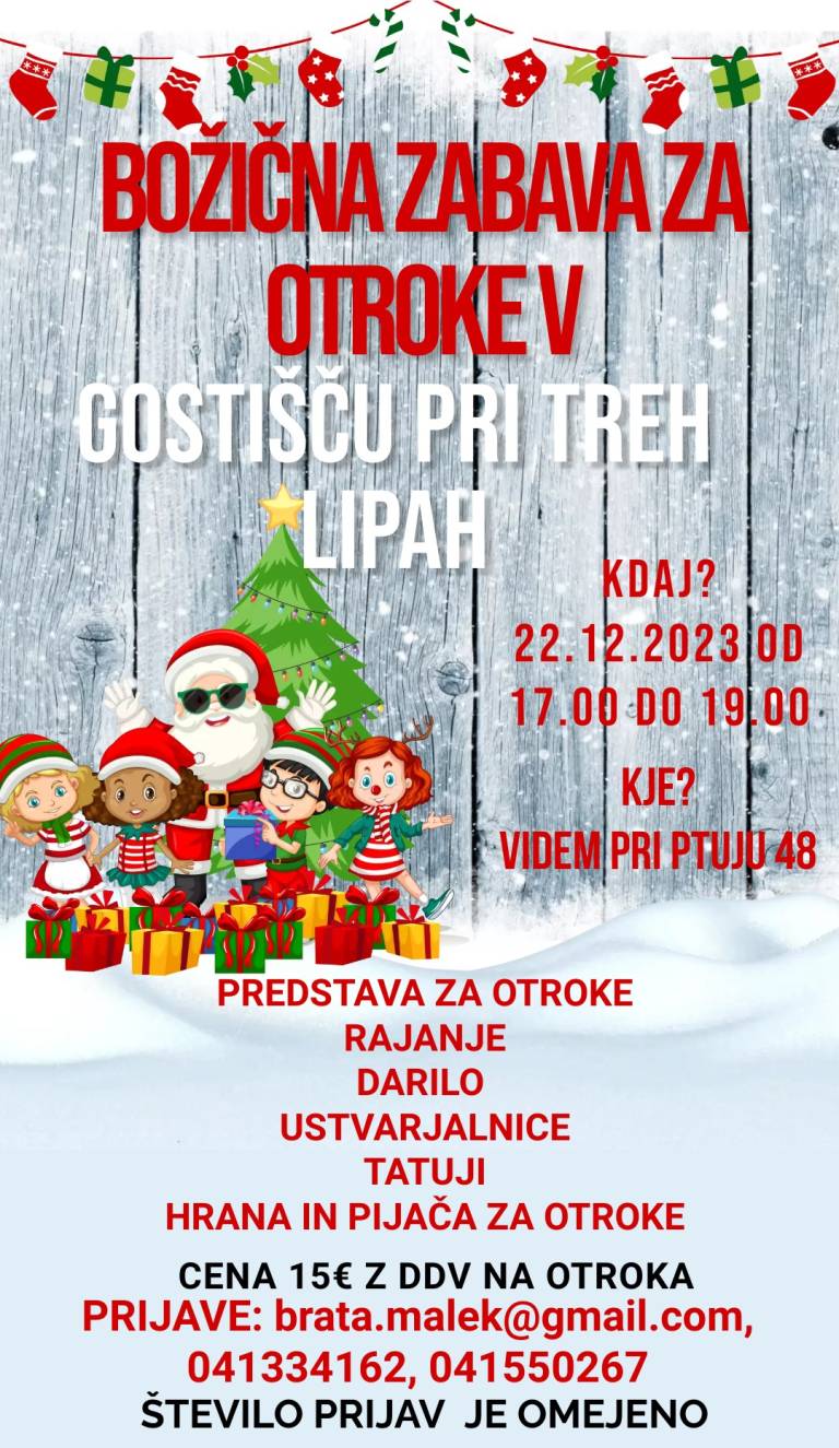 BOŽIČNA ZABAVA ZA OTROKE V GOSTIŠČU PRI TREH LIPAH